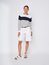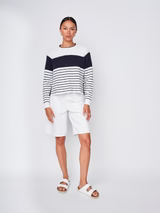 The Sailor Stripe Pullover Sweater in White/New Navy