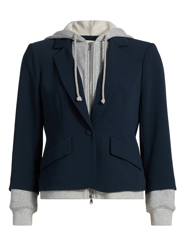 Cinq à Sept's Le Petit Khloe zip-up hoodie-style blazer is designed with front flap pockets and two-way zip closure.