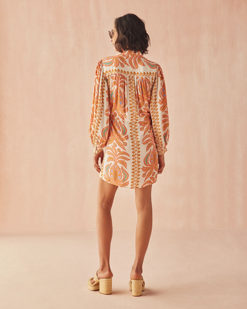 The Aria Mini Dress captures the essence of effortless elegance with its stunning Zena Sunrise print. Rendered in vibrant, fresh hues, this piece brings a playful spirit to your warm-weather wardrobe. Perfect for resort getaways and spring escapes, it transitions seamlessly from vacation days to summer adventures. The lively design radiates joy and movement.