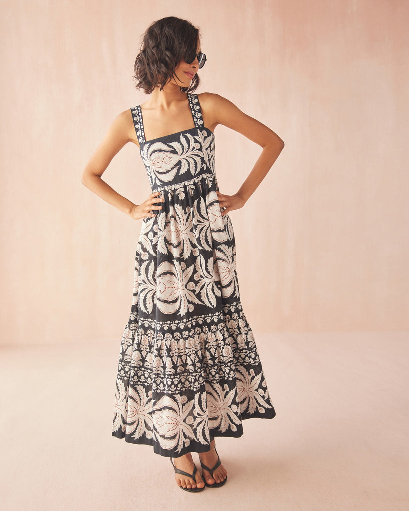 Get an instant boost of confidence in the Leena Maxi, designed with adjustable straps and a flattering high-waist effect that complements the tiered skirt. She's ready for your most-special occasions (or no occasion at all).