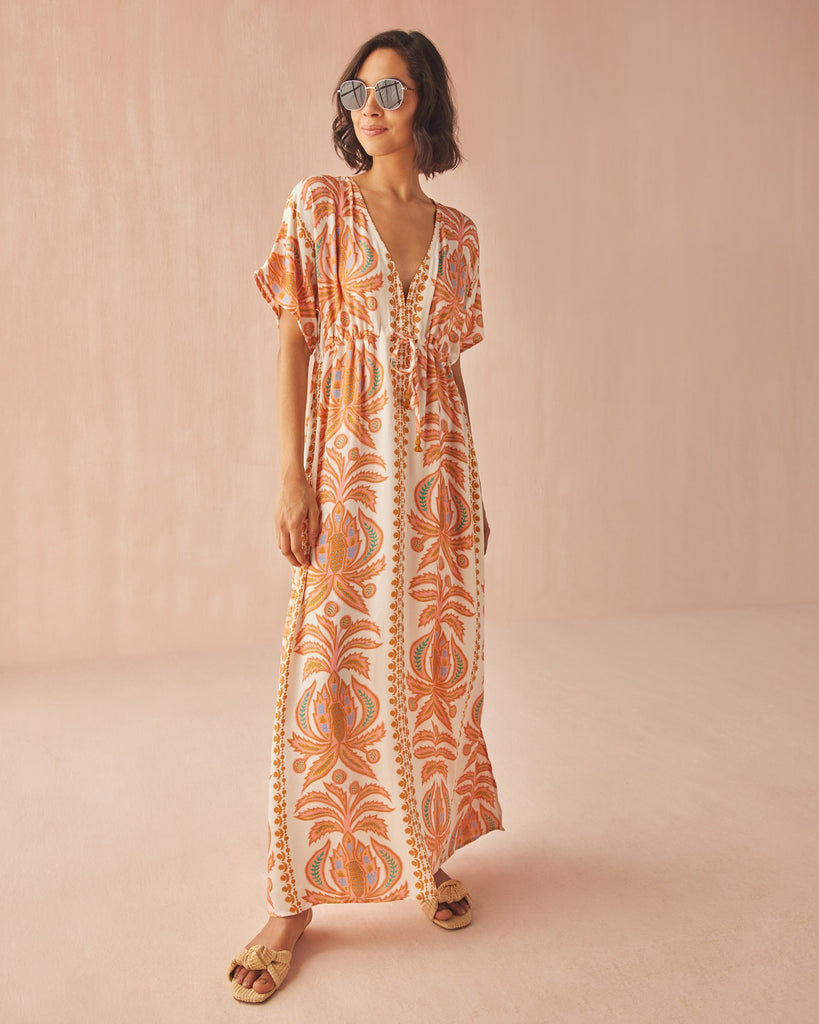 Her main job is a beach coverup, but her capabilities are so much more! An adjustable empire waist nips you in at just the right spot, for a universally flattering fit.